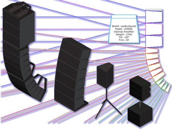 models of loudspeakers and flown or ground-stacked line arrays. While